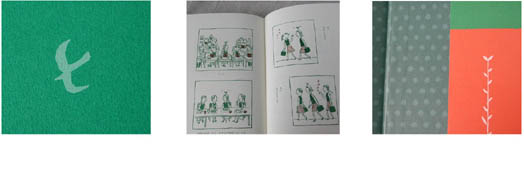左上から/カバー/表紙 /本文、左下から/裏表紙、鳥/本文/カバー袖の葉っぱ